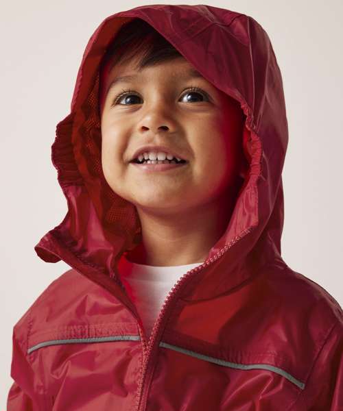 Waterproof and breathable Isolite lightweight polyester fabric. Windproof fabric. Taped seams. Integral hood. Reflective trim to front and back. Part-elasticated waist. Elasticated cuffs and hem.